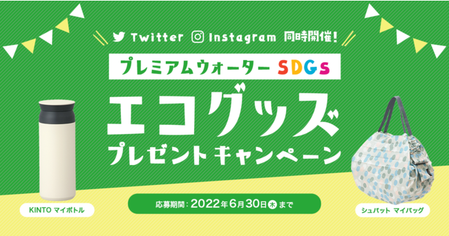 良質な水を育む日本有数の水源地から採取した天然水を、おいしさもミネラル分もそのままに保つ非加熱処理を施しご家庭に提供しているプレミアムウォーター株式会社(所在地:東京都渋谷区、代表取締役社長:金本 彰彦)は、「プレミアムウォーターSDGs エコグッズプレゼントキャンペーン」を2022年6月20日(月)からTwitter・Instagramで同時開始いたします。本キャンペーンは、「#プレミアムウォーター」 「#pw_SDGs」の2つのハッシュタグをつけて、対象の投稿を引用リツイート、またはコメントしていただいた方の中から抽選で20名様に「KINTOトラベルタンブラー 500ml」、もしくは「Shupattoコンパクトバッグ(M)」をプレゼントいたします。皆さまからのたくさんのご応募をお待ちしております!