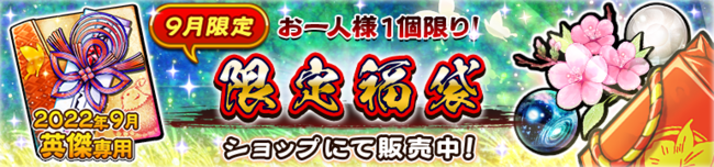当月に開催されるイベント「【紅白奉納試合】特効! 英傑 縁結び」で使用できる「【御朱印付き】9月・英傑結糸(10回)」を1個と、キャラクターの強化に必要なアイテムがまとめて手に入るお得なセットです。