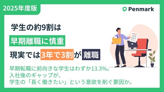 出典:Z世代のキャリア観、理想と現実にギャップ。学生の約9割は早期離職に慎重、しかし現実は“3年で3割”が離職。