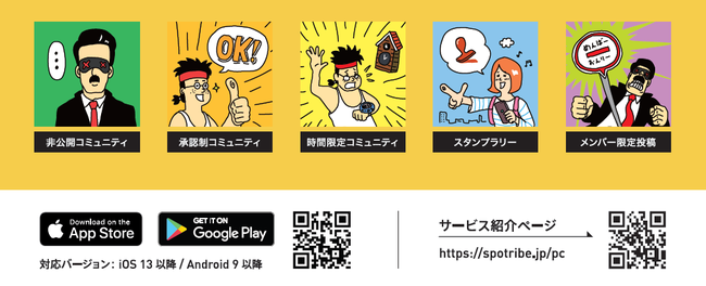 ※SpoTribeとは…その場所に行くことで初めてコミュニティに参加できるようになるため、 同じ場所にいた人/行ったことがある人同士の「狭く深いつながり」の交流が楽しめる 掲示板・コミュニティ&スタンプラリーサービスです。