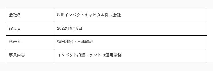 2017年よりインパクト投資を実践し調査研究・推進している一般財団法人社会変革推進財団(理事長:大野修一 所在地:東京都港区 以下、「SIIF」)は、社会課題の構造的な解決(以下、「システムチェンジ」)」を目指し、インパクト測定・マネジメント(以下、「IMM」)[1]における人材不足問題に寄与するため、2022年SIIFインパクトキャピタル株式会社(代表取締役:梅田和宏・三浦麗理、 所在地:東京都港区 以下、「SIIFIC」)を設立し、ウェルネス[2]領域におけるインパクト投資ファンド(以下、「本ファンド」を組成し、ファースト・クロージングを完了いたしました。またこれに伴い、8/1付でSIIFICのホームページ(https://siific.co.jp/)を開設しました。