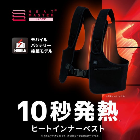 12V車載バッテリー電源タイプ(オートバイ専用モデル)の他、屋外作業やアウトドア、日常着などでも取り入れやすいモバイルバッテリーを電源とする5Vヒートインナーベストも展開。