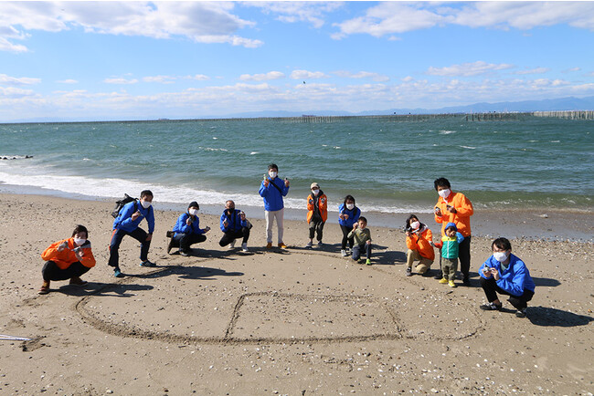 砂浜に描いたおにぎりを中心に皆でおにぎりをいただきました。