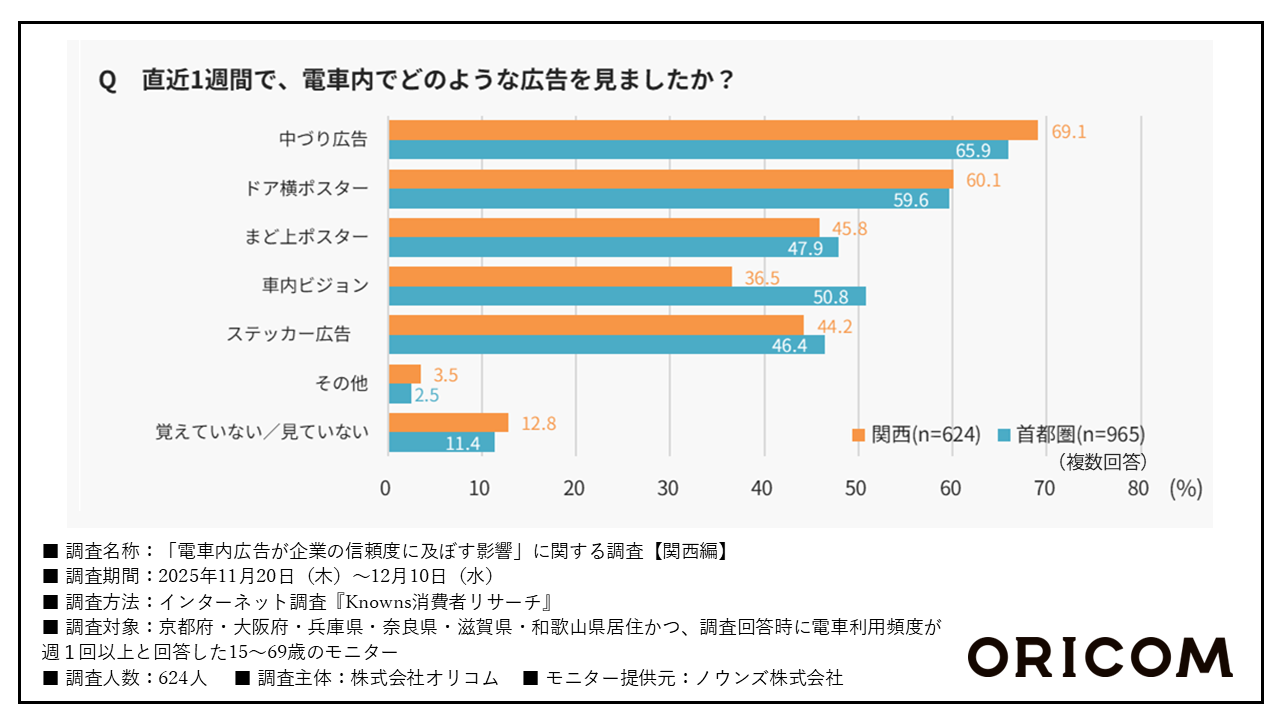 「出典:株式会社オリコム『「電車内広告が企業の信頼度に及ぼす影響」に関する調査【関西編】』2025年11月~12月」