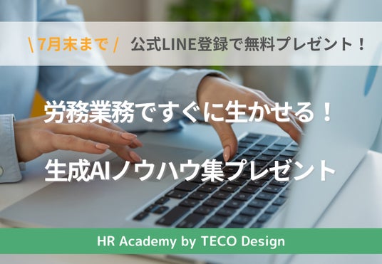 - 公式LINEに登録で、生成AI×労務を学んでいただけるコンテンツを無料でプレゼント!