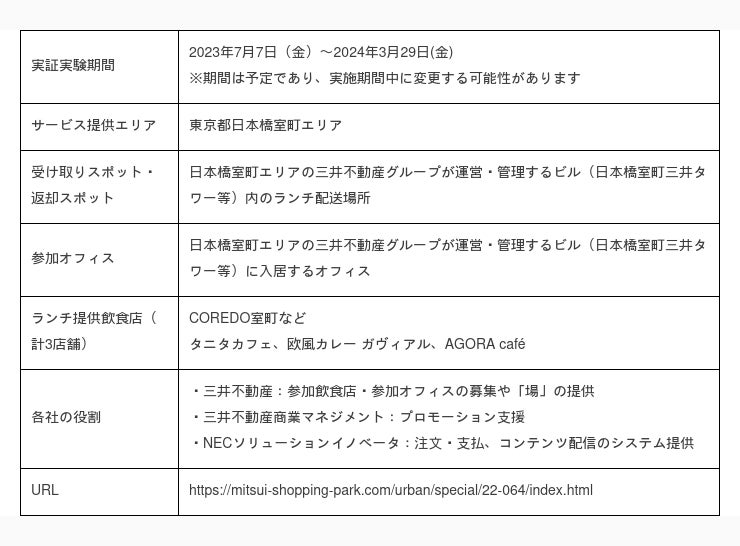 短距離・ラストワンマイルに特化した物流ソリューションを提供する株式会社エニキャリ(本社:東京都千代田、以下「当社」)は、カーボンニュートラルならびに地域に愛される持続可能な社会の実現に向けた取り組みの一環として、三井不動産株式会社(本社:東京都中央区、以下「三井不動産」)、三井不動産商業マネジメント株式会社(本社:東京都中央区、以下「三井不動産商業マネジメント」)、NECソリューションイノベータ株式会社(本社:東京都江東区、以下「NECソリューションイノベータ」)の3社が2023年7月7日(金)より東京・日本橋室町エリアで開始した、リユース容器「+R Smart Lunch Box(プラスアールスマートランチボックス)」を活用した実証実験のデリバリーパートナーとして協力します。当社が担当するのは「+R Smart Lunch Box」のデリバリーと回収です。使い捨て弁当容器をリユース容器に代替することで、使い捨てプラスチック容器の製造ならびにプラごみ・容器ごみの廃棄に伴うCO2排出量の削減に貢献する取り組みに賛同し、本実証実験に協力することを決定しました。