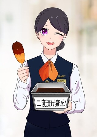 AIさくらさんに、より親しみを持ってご利用いただけるよう串カツを持ったAIさくらさんが駅及び、駅周辺施設をご案内します。