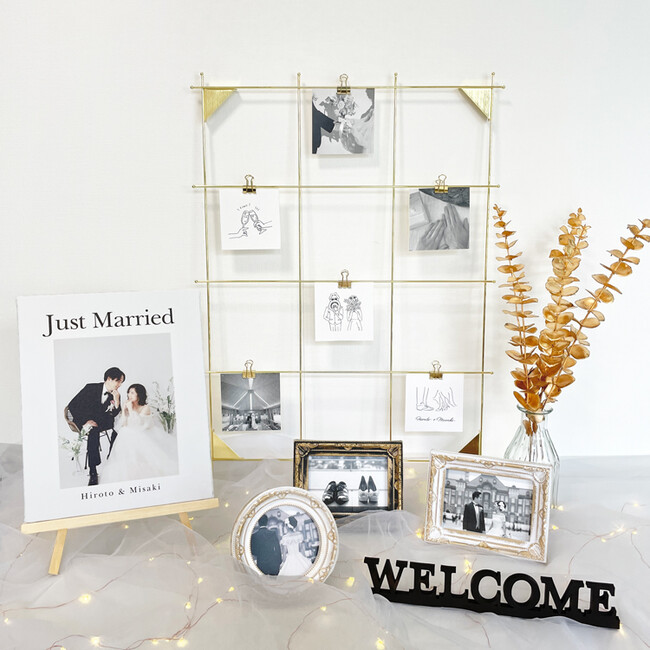 写真たてや、造花、イルミネーションライトなど、ウェルカムスペースに人気のアイテムがセットに含まれているため、自分が飾りたい写真を用意するだけでOK。