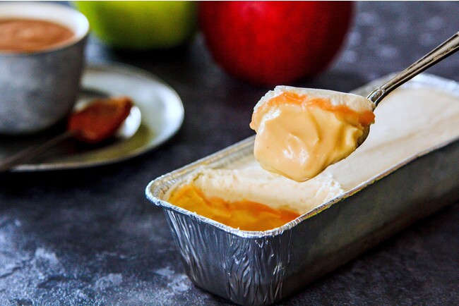 北海道産のチーズ、生クリーム、発酵バターを100%使用した世界最高峰のミルクの美味しさ。青森産の王林と国産紅玉をブレンドして香りとジューシーな酸味に仕上げました。自家製焦がしキャラメルクリームを特別たっぷり配合。コントラストの効いた上品な味わいです。