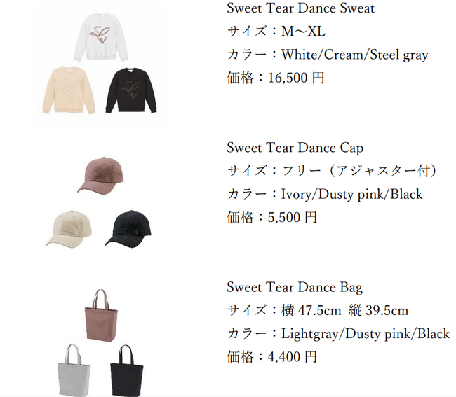 コラボレーション第二弾はモデル、イラストレーター、くノ一として活躍中の小越しほみさんがプロデュースする「LUNE ET LARME(ルネラルム)」。『Sweet Tear Dance』をテーマにユニセックスで着用できるスウェット、キャップ、バッグを販売いたします。
