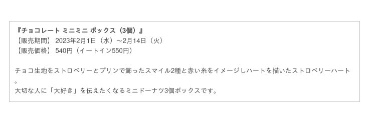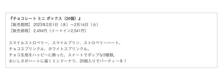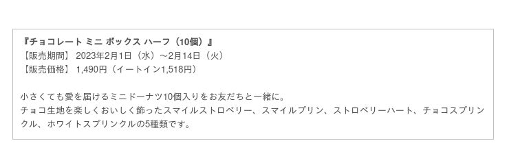 ≪参考情報:商品情報≫ ※ミニドーナツの単品販売は行っておりません。