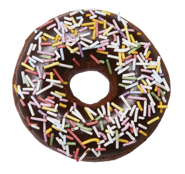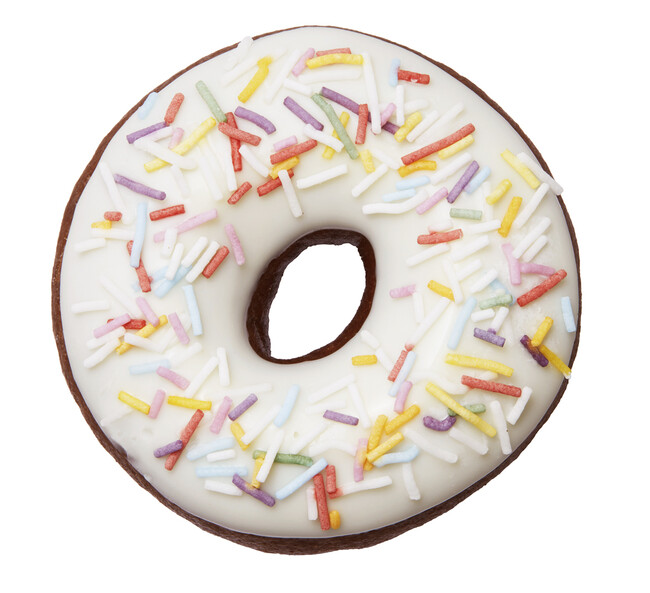 『ミニチョコ ホワイト スプリンクル』は、優しい甘さのホワイトチョコをコーティングしたチョコ生地に、カラフルなスプリンクルを散りばめた、ポップなドーナツです。