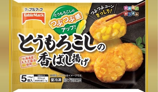 とうもろこしの香ばし揚げとうもろこしは甘みが強いと言われている「スーパースイートコーン」を使用。とうもろこしの配合割合とつぶ感にこだわることでとうもろこしの味わいを存分に楽しめる一品です。