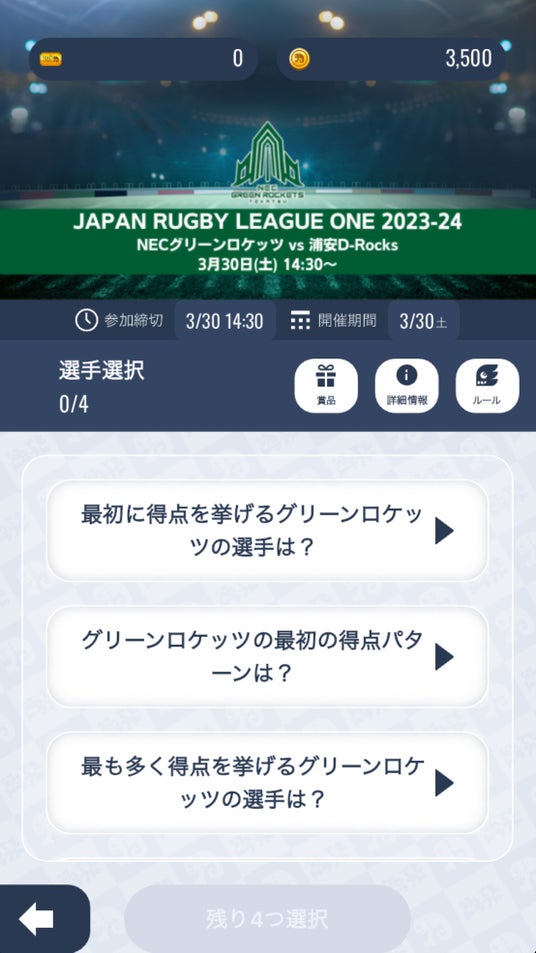 イノベーションの力で新たなスポーツ・エンターテインメントを創造し、まだ見ぬ感動と熱狂を提供するアプリ「なんドラ」を運営する株式会社なんでもドラフト(本社:東京渋谷区、代表:森井啓允)は、3月30日(日)にユアテックスタジアム仙台で開催される、NECグリーンロケッツ東葛(NTTジャパンラグビー リーグワン2023-2024 ディビション2)ビジターゲーム vs 浦安D-Rocksの試合展開予想企画を開催します。