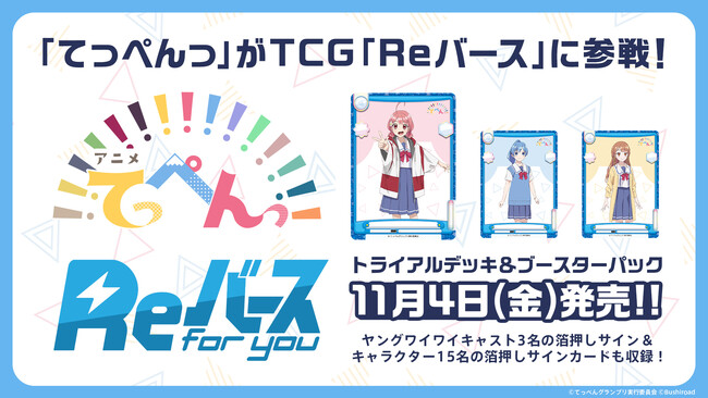 アニメ「てっぺんっ!!!!!!!!!!!!!!!」 がトレーディングアードゲーム「Reバース」に参戦することが決定いたしました!発売は11月4日(金)を予定しています。
