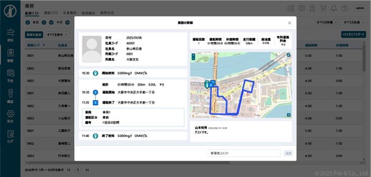 株式会社パイ・アール(本社:大阪市中央区、代表取締役:安田功)は、白ナンバー向けアルコールチェックシステムでシェアNo.1※ を誇る「アルキラーNEX」の走行管理機能を2025年1月14日より大幅にアップデートします。