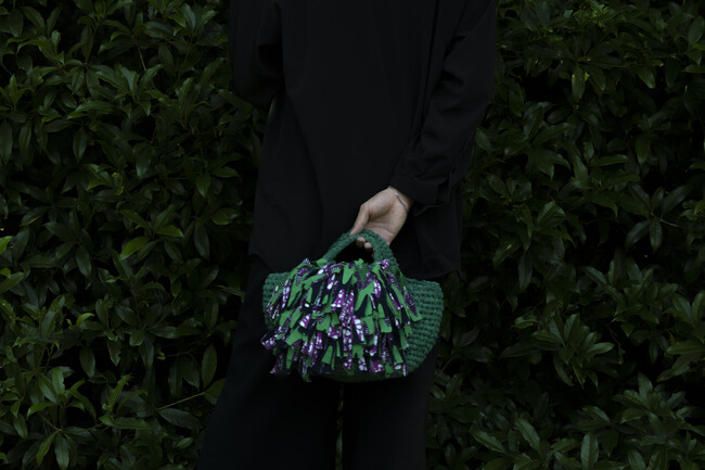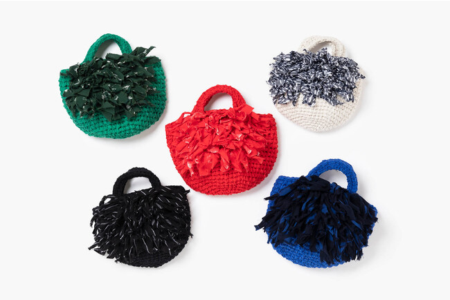 裂き編み作家・河村美琴さんが作る、久留米絣をフリンジとして編み込んだ、 美しい「世界に一つだけ」のバッグ。 好みの柄を60種類の絣生地より選びオーダーできる、「久留米絣フリンジバッグ」受注会を行います