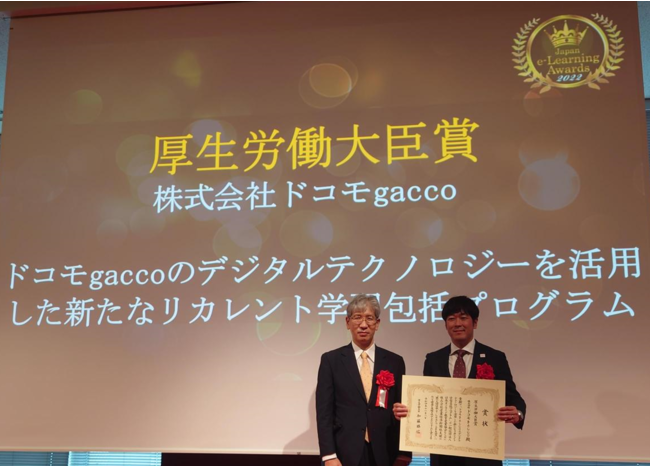 株式会社ドコモgacco(東京都港区、代表取締役社長 佐々木基弘、以下ドコモgacco)は、本日授賞式を実施した、企業・学校・自治体などにおける、eラーニングを活用したコンテンツ・サービス・ソリューションの中からとくに優れたものを選出する「第19回 日本e-Learning大賞※」にて、「ドコモgaccoのデジタルテクノロジーを活用した新たなリカレント学習包括プログラムgllap(グラップ)」が厚生労働大臣賞を受賞したことを記念して、11月9日(水)に特別講演をオンラインで無料開催することをお知らせいたします。ドコモgacco代表の佐々木 基弘と株式会社データミックス代表取締役の堅田 洋資氏が登壇し、DXと教養の両分野を学ぶことの意義についてのディスカッションを通じて、ドコモgaccoが目指す世界についてお伝えしてまいります。