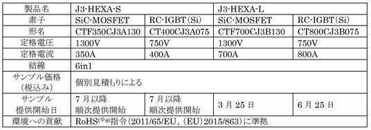 ・半導体素子としてSiC-MOSFETとRC-IGBT(Si)の2種類をラインアップ