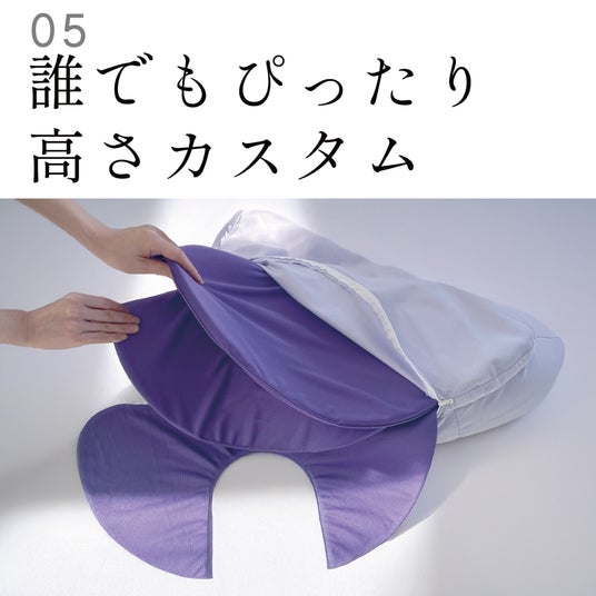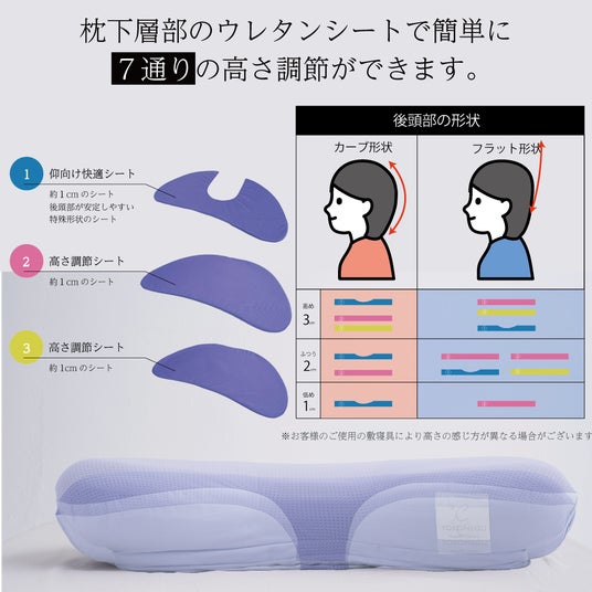 二階建て構造の下段部は3層のウレタンシートから成り立ち、抜いたり順番を入れ替える事で高さや後頭部の形状に合わせた自分だけのカスタマイズが可能となっています。