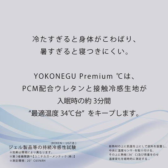 YOKONEGU Premium ℃は、従来の快適な寝姿勢にプラスして快適な入眠温度設定を備えたアイテム となっています。
