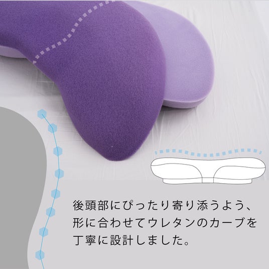 中材のウレタンフォームは頭部の形状に合わせた絶妙なカットで仕上げ、かたさの違う上下2層ウレタンフォームから成り立ちます。頭部の触れる上層はPCM配合のPCM Layer Formとなり、優しいタッチで支え、下層のウレタンフォームである程度しっかりと支える構造となっています。