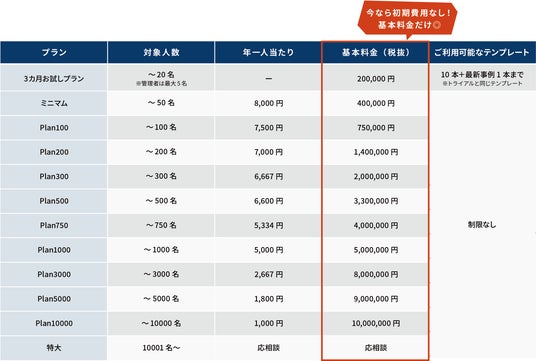 「本格導入の前に、まずは試してみたい」という声に応え、短期利用が可能な3カ月お試しプランを新設しました。特定部署やプロジェクト単位での試験運用など、導入前の検証用途として活用いただけます。