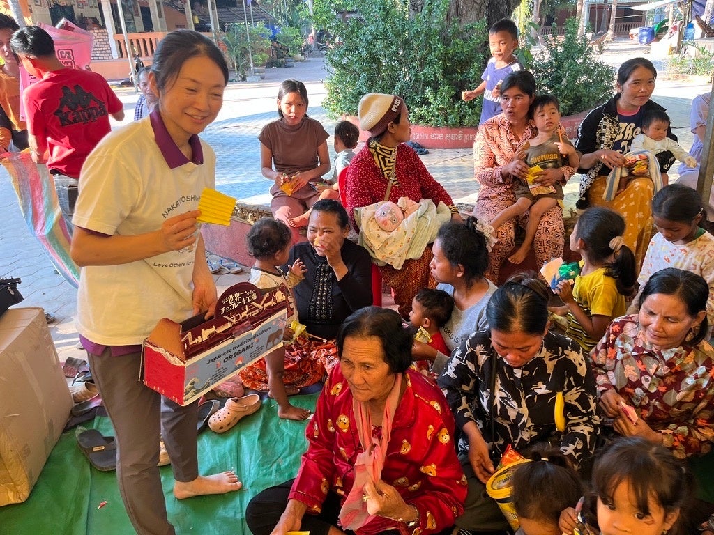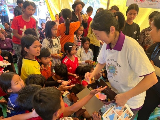 同校5年生が地域の方々と1年間かけて栽培した「名戸ヶ谷米」は、年明けに実施したカンボジア難民キャンプ支援(炊き出し等)で活用され、児童たちが作成した折り紙は難民キャンプの子ども達の心を癒すワークショップとして活用されました。本講演会では支援現場の様子を映像とともに共有。子どもたちの学びが、海の向こうの暮らしを具体的に支えたことを報告しました。