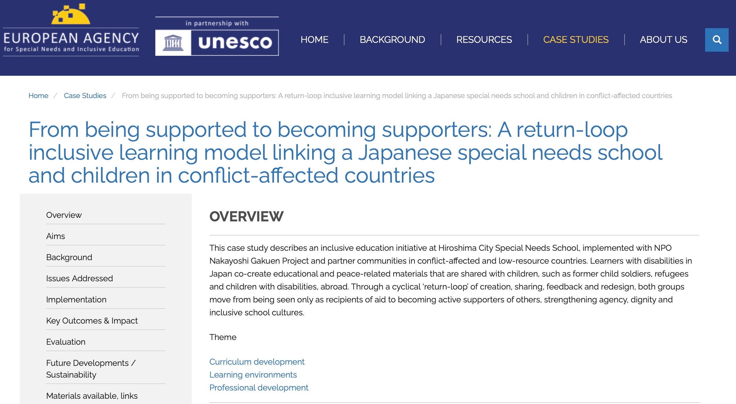 なかよし学園の「世界とつながる学び(CoRe Loop)」は、ユネスコ(UNESCO)とEuropean Agency for Special Needs and Inclusive Educationが連携する国際知見基盤「Inclusive Education in Action」に、ケーススタディとして掲載されています。