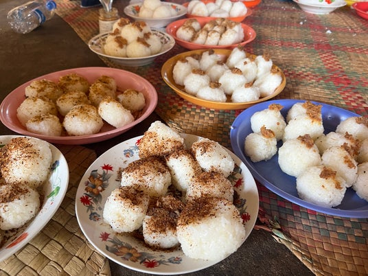 難民の子ども達に提供された名戸ヶ谷米のおにぎり