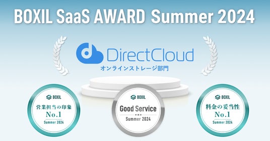 提供する「DirectCloud」は、スマートキャンプ株式会社(以下「スマートキャンプ」)が主催する「BOXIL SaaS AWARD Summer 2024」のオンラインストレージ部門で「Good Service」および2つのNo.1を受賞いたしました。