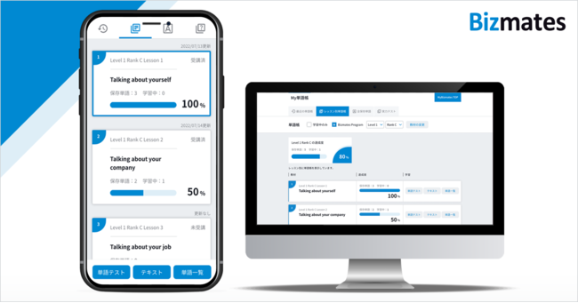 ビジネス特化型オンライン英会話事業「Bizmates」(https://www.bizmates.jp/)を展開するビズメイツ株式会社(東京都千代田区、代表取締役社長:鈴木 伸明 、以下「当社」)は、2022年7月27日(水)より、受講者ポータルサイト「MyBizmates」にて、オンライン英会話の学習効果を飛躍的に向上させる「My単語帳」機能の提供を開始しました。
