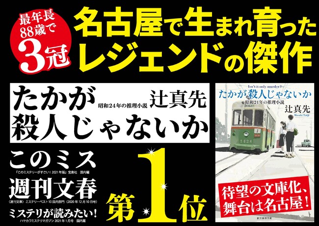 史上最高齢の当時88歳で年末ミステリランキング3冠を獲得するなど、ミステリ界を席捲した傑作『たかが殺人じゃないか 昭和24年の推理小説』が遂に文庫化されました。著者は90歳を迎えたミステリ界のレジェンド・辻真先。今なお傑作を発表し続ける著者ですが、2020年に四六判で刊行されたこの『たかが殺人じゃないか』は、新聞・雑誌をはじめ各種メディアで絶賛を博し、年末ミステリランキングを席捲する超話題作となりました。