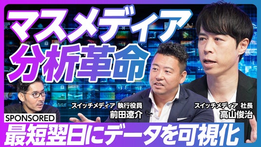 株式会社スイッチメディア(本社:東京都港区、代表取締役 高山 俊治)は、国内最大規模のテレビ視聴パネルから独自に収集したテレビ視聴データを保有していることを強みとし、多面的な切り口の属性情報によりターゲットを絞り込み、テレビCM視聴と商品購入の関係性を分析して売上につなげるクラウド型テレビCM出稿分析サービス「TVAL」および今放送中のテレビ番組視聴率がわかる「TVAL now」の開発・運営を行っています。