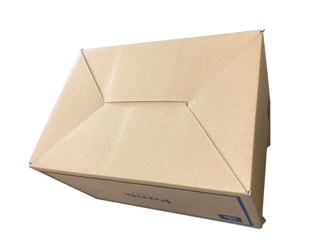 段ボール箱の底面は糊づけ、上部はテープで止める仕様になっておりましたが、糊づけをしなくてもよい組み立て式の仕様に改良し、お客様にも安全・簡単に開封、廃棄できるデザインへ。底面のテープ止め作業と1.で記載したステッカーの貼付作業も不要となり作業時間も短縮しました。