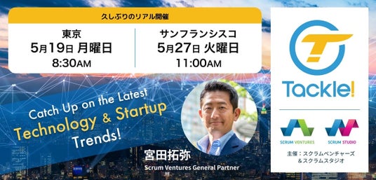 サンフランシスコと東京を拠点にアーリーステージのベンチャー企業に投資を行うスクラムベンチャーズ(ジェネラルパートナー:宮田 拓弥)は、シリコンバレーの最新スタートアップトレンドやテクノロジー情報を共有・解説する勉強会「Tackle!」を、渋谷サクラステージにて5月19日(月)に開催いたします。