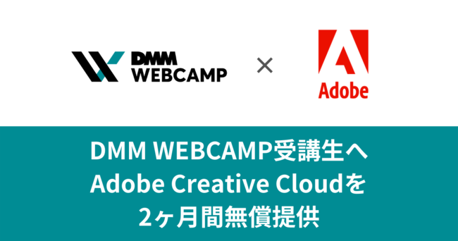 DMM.comグループの株式会社インフラトップ(本社:東京都渋谷区、代表:大島礼頌 https://infratop.jp/)が運営するスクール「DMM WEBCAMP」はアドビ株式会社の協力のもと、対象コースの受講生に対し、Adobe Creative Cloudコンプリートプランを2ヶ月間無償提供することをお知らせいたします。