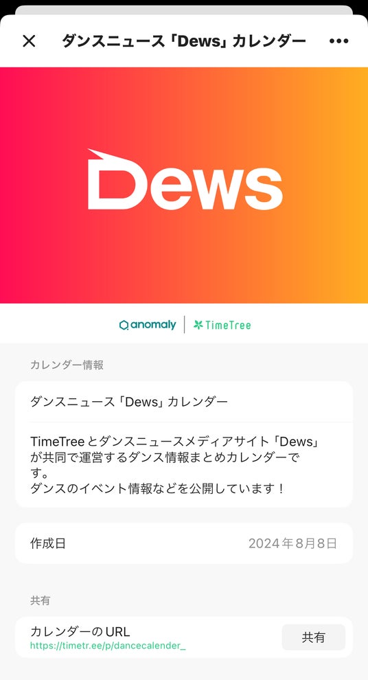 イベント情報プラットフォーム「TimeTree 公開カレンダー」上でダンスニュース「Dews」カレンダーを共同運営