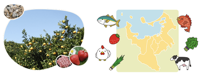 食べ物がおいしく、自然が近いという福岡市の魅力を支えているのは、市内の多くの場所で営まれている農林水産業。水稲のほか、野菜や花を中心に様々な農作物が市内で栽培されています。一方、博多湾では多種多様な漁業が営まれ、美味しい魚介類が新鮮なうちに消費者へ届けられています。