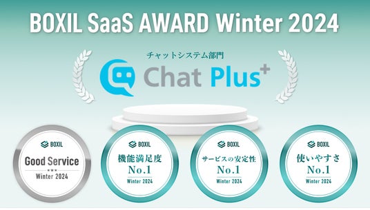 チャットプラス株式会社(本社:東京都千代田区、代表取締役:大江繭子)が提供する生成AI対応のチャットサポートシステム「ChatPlus(チャットプラス)」は、「BOXIL SaaS AWARD Winter 2024」のチャットシステム部門において、「Good Service」、「サービスの安定性No.1」、「機能満足度No.1」、「使いやすさNo.1」に選出されたことをお知らせします。