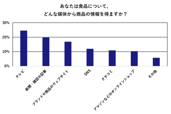 テレビと答えた人が一番多く約25%、続いて20%の人が新聞・雑誌の記事と答えました。ウェブサイト(約17%)・SNS(約12%)・オンラインショップ(約11%)と答えた人を合計すると約39%と、一定数がインターネット上から情報を入手していることが分かりました。