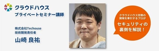 講師として、サイバーセキュリティの国家資格「情報処理安全確保支援士」を保有し、『クラウドハウス労務』のプロダクトのアーキテクチャを設計したTechouse 技術開発責任者の山崎が登壇します。
