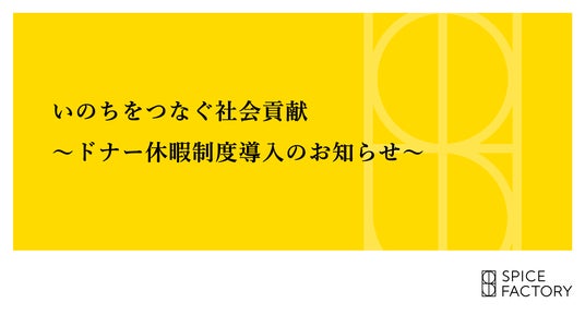 デジタル・トランスフォーメーションを支援するスパイスファクトリー株式会社(本社:東京都港区、代表取締役CEO:高木 広之介)は、2024年5月22日より福利厚生の一環としてドナー休暇制度を制定しました。これにより従業員はドナーに選ばれた際に検査や手術入院で有給休暇を使用せずに特別休暇を最大5日取得することができます。
