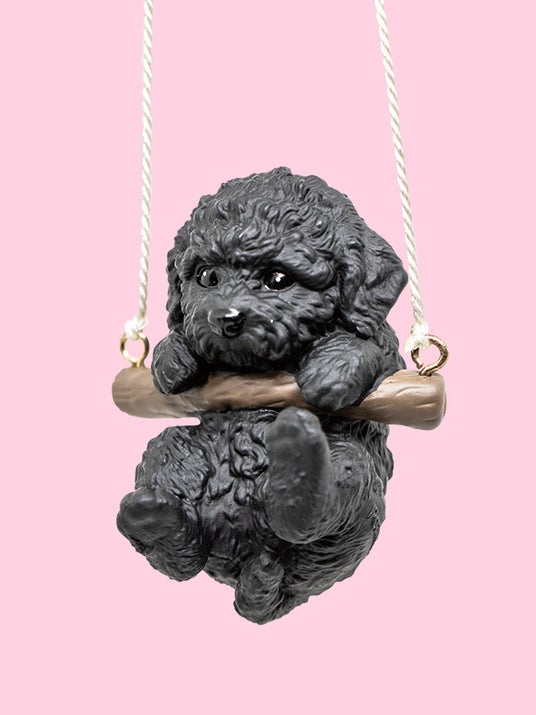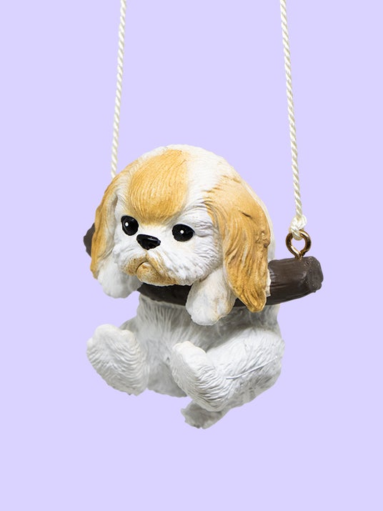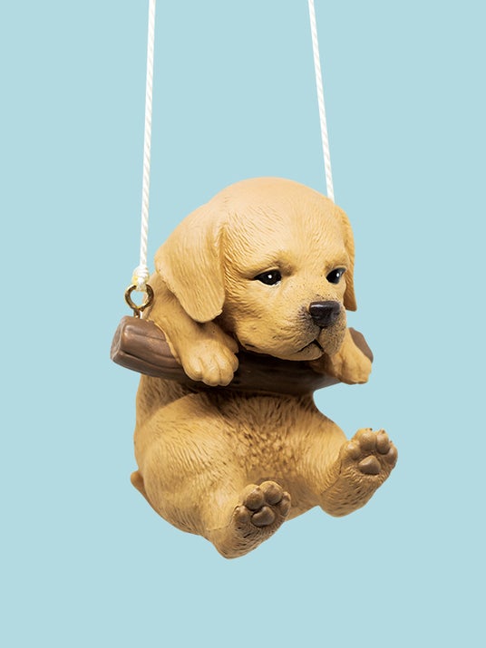 付属のひもで棚など好きな場所に吊るすことができ、ブランコにつかまるわんこが可愛くゆらゆら揺れます。