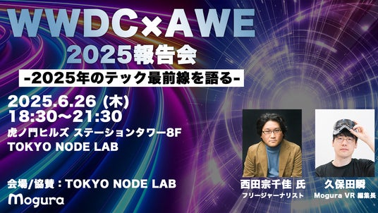 株式会社Moguraは、2025年6月26(木)TOKYO NODE LABにて、AppleとXRの最前線を業界トップジャーナリストが徹底解説する「WWDC & AWE報告会」を開催致します。