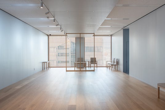 アートスペース福寿園は建築家・陶器二三雄氏によって設計されました。福寿園京都本店の建築コンセプトに相応しいアート作品が輝き、心が和む「中庸」の空間です。お茶をいただきながら会話を楽しむ新しい体験のできるギャラリー空間は、温もり感じる木材を使用したフロアー、建物全体で使用されている伝統的な「しとみど」を残した光の演出、遊び心を大切にしたガラスのパーテーションがデザインフィーチャーになっています。ゆったりとした時間を過ごせるように考えられたラウンジチェアやベンチも配置されており、福寿園ならではのおもてなしをご提供させていただきます。