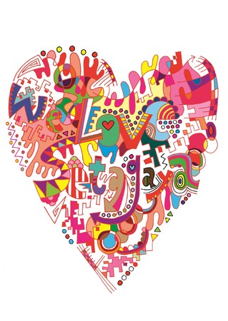 街行く人々が、仮囲いを見て、思わず目を引いて立ち止まる様な明るさを演出。パッと見ると赤いハートのモチーフですが、よ~く見ると細かな模様やビビットな色使い。 こちらは手描きで描いたものをデータに起こして、デジタルで色を付けた作品です。「WE LOVE SETAGAYA」のメッセージも隠れています。私の絵を見て、老若男女問わず前向きに、明日からも頑張ろうと奮い立たせるハッピーな気分になれたら嬉しいです。