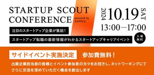 株式会社ケップル(代表取締役CEO:神先孝裕、以下「ケップル」)は、2024年10月19日に、Tokyo Innovation Base(東京・有楽町)にて、スタートアップ転職支援イベント「Startup Scout Conference powered by KEPPLE」を開催いたします。この度、イベント終了後にさらに交流を深めていただくため、サイドイベントの実施を決定いたしました!