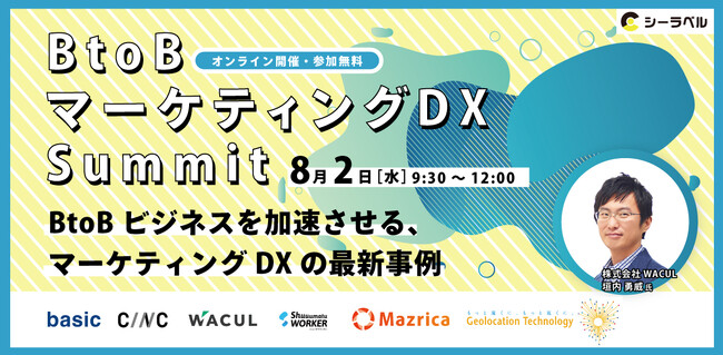 株式会社シューマツワーカー(本社:東京都渋谷区、代表取締役CEO:松村 幸弥)は、2023年8月2日に開催される、株式会社シーラベルが主催し、株式会社ベーシックが共催するオンラインイベント「BtoBマーケティングDX Summit」に登壇することが決定いたしました。