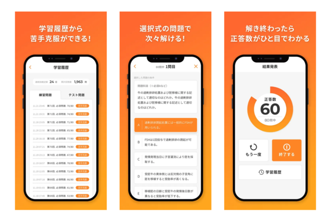 「app academy」は、獣医師の国家試験に挑戦する方向けに開発された、5年間分の過去問を何度もアプリで解くことができるスタディアプリです。